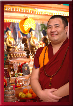 Tulku Sonam Lodroe, bestowed the title of “Khenpo” by His Holiness Adzom Jamga Rinpoche and His Holiness Penor Rinpoche, was born in Dira, the province of Sichuan, China. In Tibetan, Khenpo refers to a person with extensive knowledge of Buddhism, while Tulku is a reincarnated Buddha or Bodhisattva. He was recognized as the incarnation of Adzom Losel Rinpoche by H.H Jamga Rinpoche, His Holiness the Fourteenth Dalai Lama and His Holiness Dordrubchan Rinpoche.
