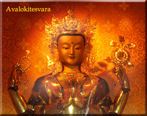 The Dharma first appeared in Tibet during the rein of Lha-Thothori Nyenten, when the Sutra of the Rites of Renunciation and Fulfillment and a tsa-tsa mound fell on the palace roof. Five generations later, in accordance with prophecies that he would understand the meaning of the sutra, there appeared the Dharma King Songtsen Gampo, and emanation of the Sublime Compassionate One (Avalokiteshvara).