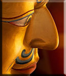 NSCF is making 100,000 nos, 8 inches tall, copper Guru Rinpoche statues, to be placed in the Nga Gyur Shed Dup Choe Ling. Guru Rinpoche statue's face is beautifully stern, almost wrathful, his eyes gaze straight ahead. He sits in lotus posture with right hand holding a vajra resting on the lap and in his left hand he holds the staff with three skulls. |